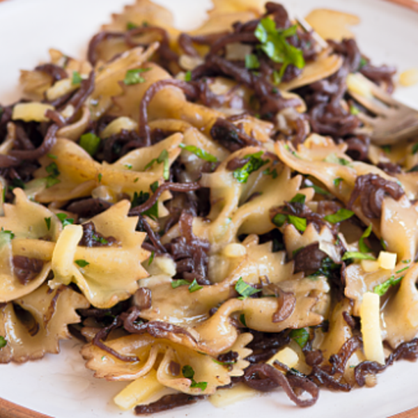 Φιογκάκια με Κρεμμύδια και Κόκκινο Κρασί