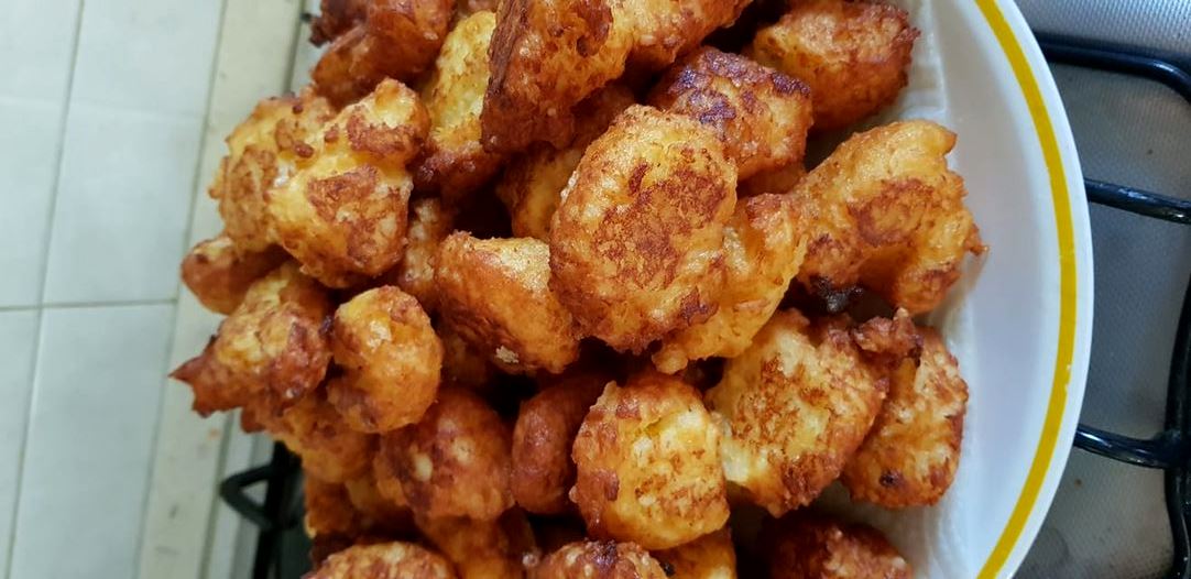 Ζεσταίνουμε το λάδι και τηγανίζουμε δόσεις από το μειγμα ρυζιού σε ένα κουταλάκι του γλυκού.