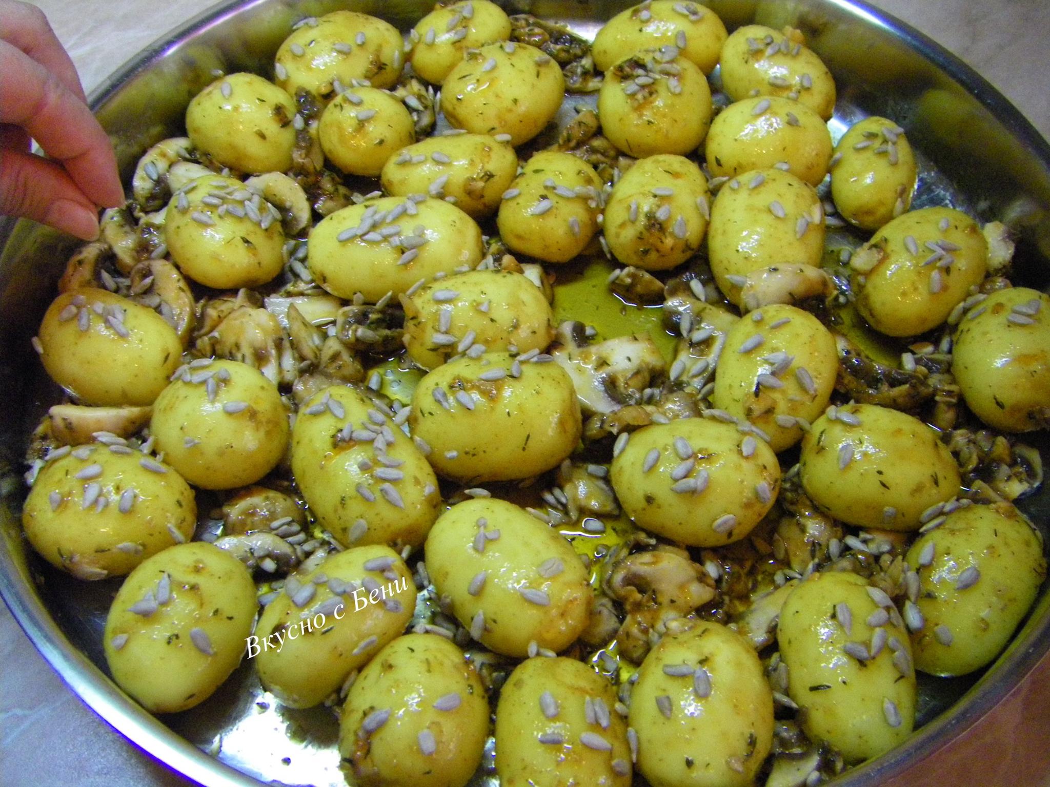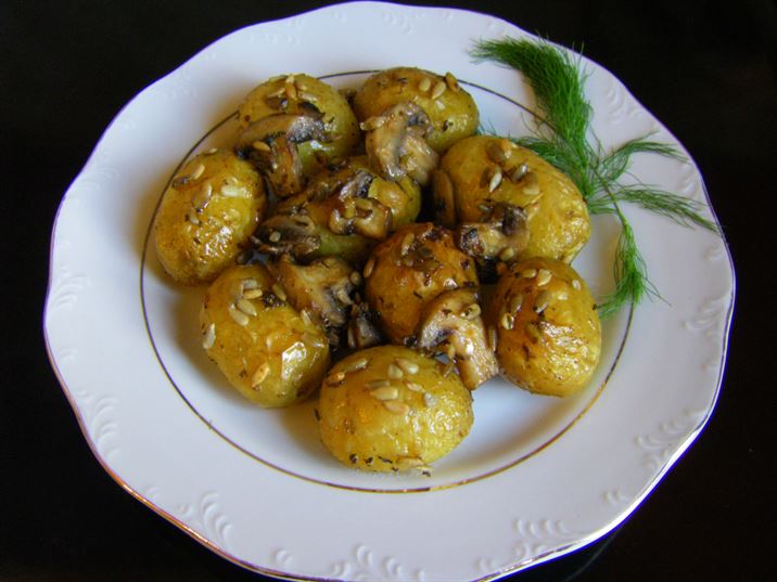 Φρέσκες πατάτες με μανιτάρια, ηλιόσπορους και μπαχαρικά