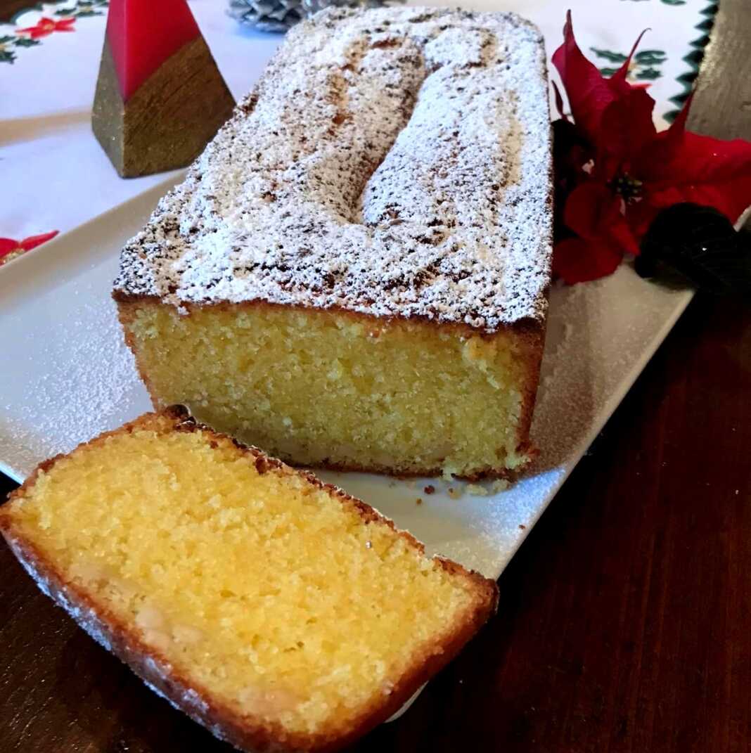 Στρωνουμε με χαρτί ψησίματος μια φόρμα κεικ 28 εκ. και ρίχνουμε τη ζύμη. Περνάμε ένα μαχαίρι πάνω από την επιφάνεια του κεικ σε όλο το μήκος, μπρος-πίσω 2-3 φορές. Αυτό θα επιτρέψει στο κεικ να σχηματίσει τον κλασικό «θόλο». Ψήνουμε σε προθερμασμένο φούρνο για περίπου 50-60 λεπτά, κάνουμε πάντα το τεστ οδοντογλυφίδας πριν το βγάλουμε από τη φόρμα, πρέπει να βγει τελείως στεγνό. Αφήνουμε να κρυώσει σε σχάρα πασπαλίζουμε με αχνη και σερβίρουμε.