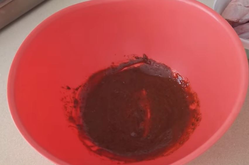Σε μία μπασίνα (μεγάλο μπολ), ρίχνετε όλα τα υλικά για τη σάλτσα: ρίγανη, κόκκινο πιπέρι, μαύρο πιπέρι, θυμάρι, πάστα ντομάτας, λάδι (4-5 κσ), αλάτι, και το γάλα ή νερό. Ανακατεύουμε πολύ καλά την σάλτσα μέχρι να ομογενοποιηθούν όλα τα υλικά.