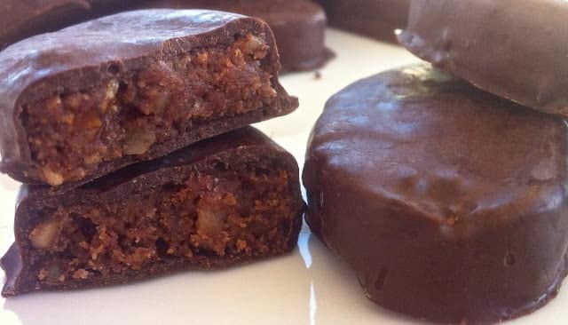 Μόλις βγει ο κορμός από το ψυγείο, κόψε τον σε φέτες, πέρασε τη καθεμία από τη σοκολάτα και βάλε τα σε λαδόκολλα σε ένα ταψί και άσε τα να κρυώσουν για 3-4 ώρες στο ψυγείο. Οι καριόκες μας είναι έτοιμες να τις απολαύσουμε.
