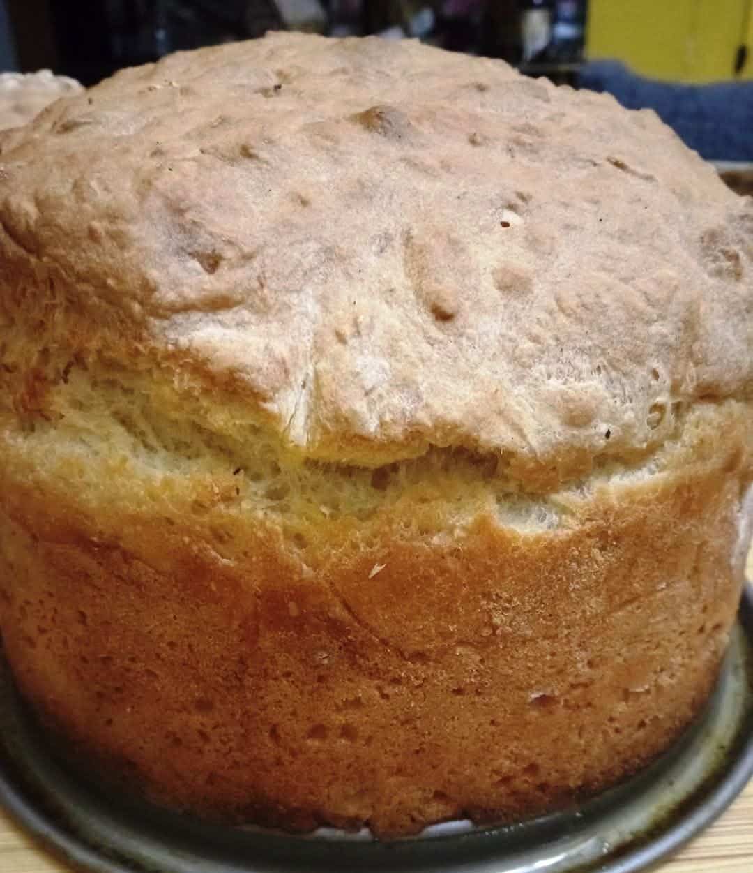 Αφήνουμε το ψωμί να κρυώσει ελαφρά πριν το κόψουμε.
