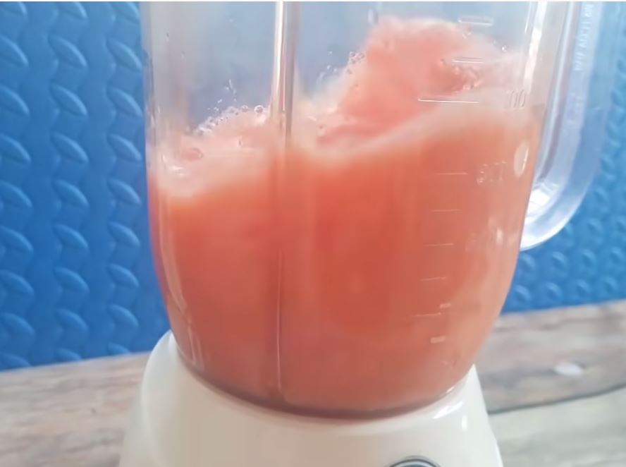 2. Βάλτε τα καρότα και τις ντομάτες και το νερό στο μπλέντερ και χτυπήστε να γίνει χυμός.