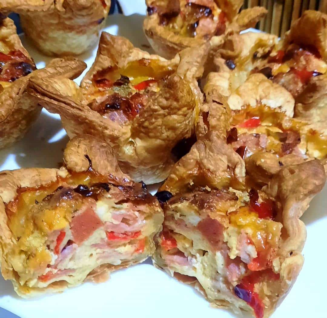 Φτιάξτε πεντανόστιμες Φωλίτσες Σφολιάτας με τυρί, ζαμπόν και πιπεριές σε θήκες για μάφιν. Μια πανεύκολη και γρήγορη συνταγή για το γιορτινό σας τραπέζι.