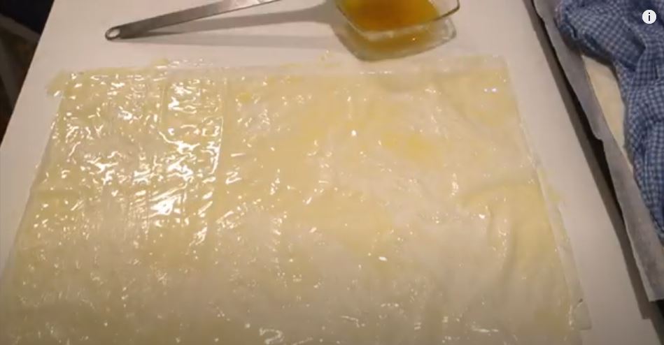 Βουτυρώνουμε το πάνω φύλλο καλά