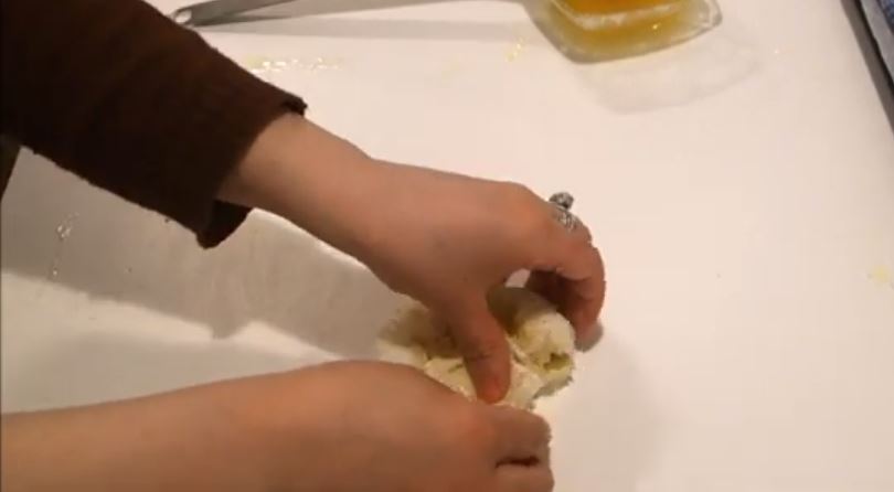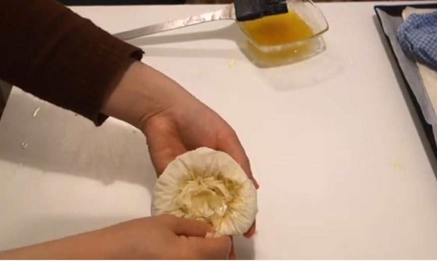 Το σουρώνουμε με τα χέρια προς το κέντρο του πλάστη και μετα το σπρώχνουμε να βγει