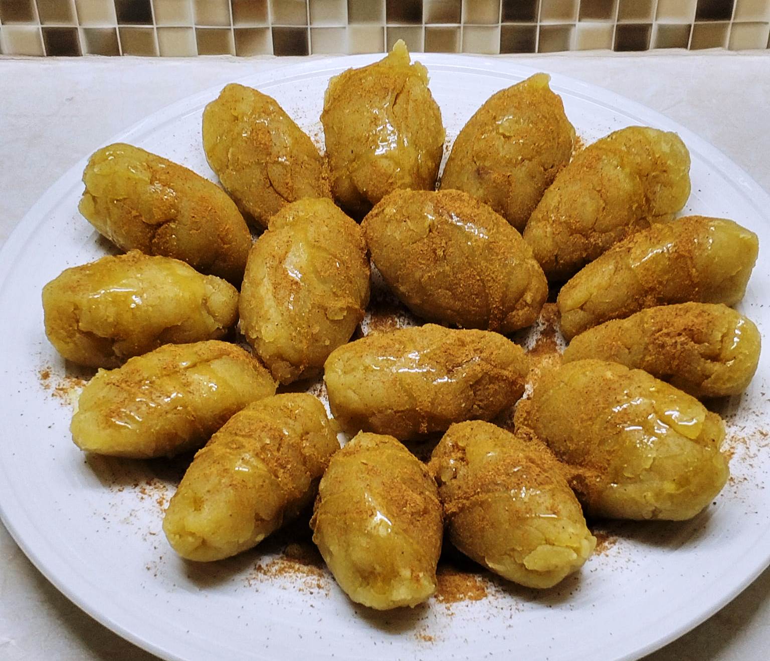 Στην συνέχεια σε μια κατσαρόλα βάζουμε το λάδι να κάψει και ρίχνουμε το αλεύρι και το καρβουδιζουμε όσο θέλουμε το χρώμα πιο σκούρο ή πιο ανοιχτό ρίχνουμε σιγά σιγά το σιρόπι και με γρήγορες κινήσεις ανακατεύουμε καλά πήζει αμέσως και με το κουταλι κάνουμε κουταλιές και στο πιάτο σερβίρουμε με κανέλα μέλι ή ζάχαρη αν θέλουμε