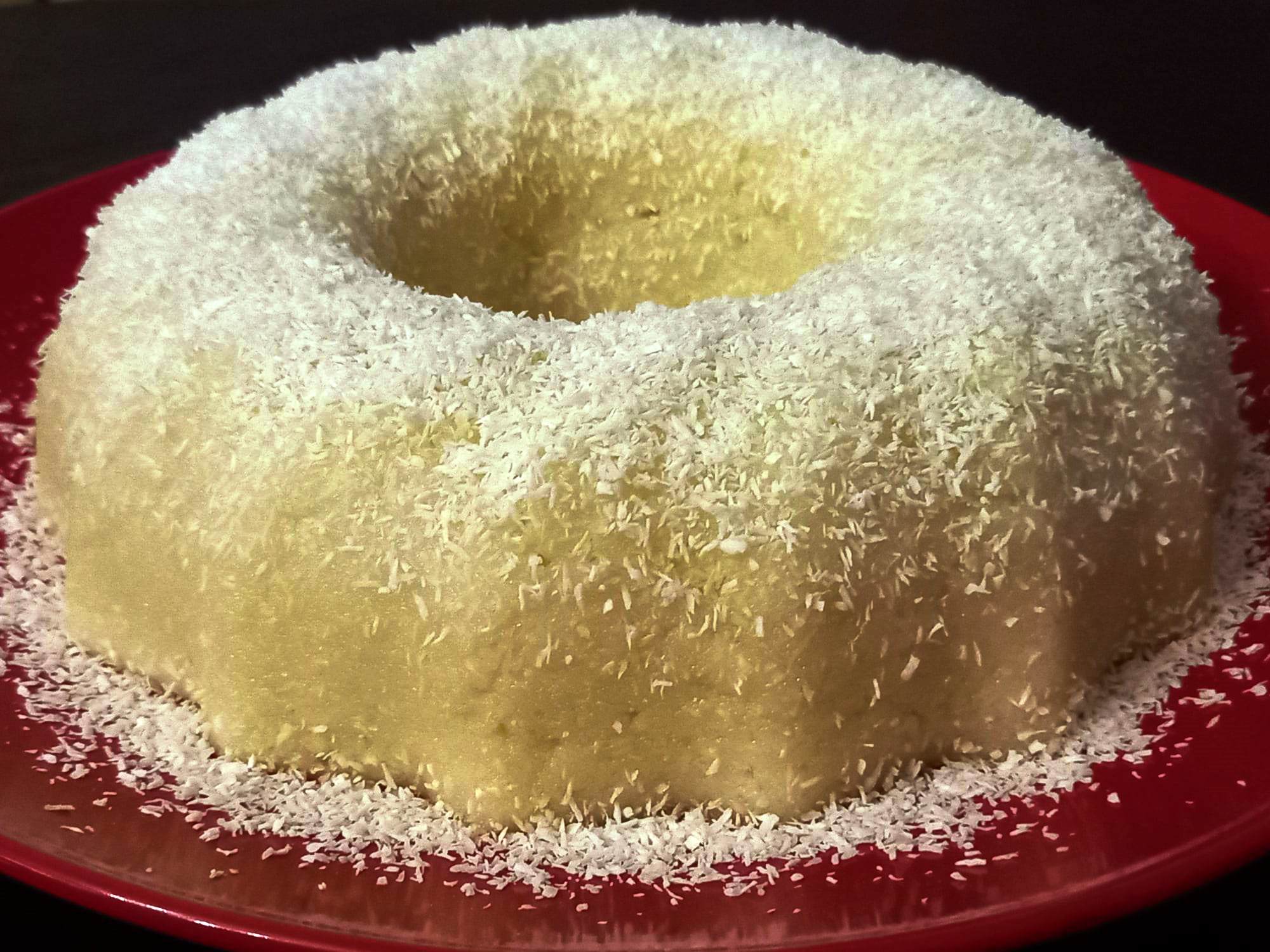 Μόλις αρχίζει να πήζει ρίχνουμε την καρύδα και συνεχίζουμε να ανακατεύουμε για 5 λεπτά.Αφαιρούμε απ τη φωτιά και έτσι όπως είναι ζεστό το ρίχνουμε στη φόρμα. Αφήνουμε να σταθεί για μισή ώρα και μετά το αναποδογυρίζουμε σε μία πιατέλα.Πασπαλίζουμε με λίγο ινδοκάρυδο η με φιλέ αμυγδάλου και απολαμβάνουμε!!!!