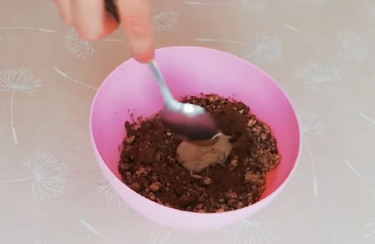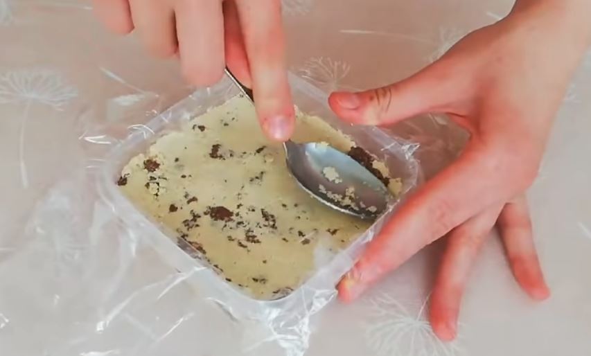 Πιεζουμε με ένα κουταλι να γίνει μια συμπαγής μαζα.