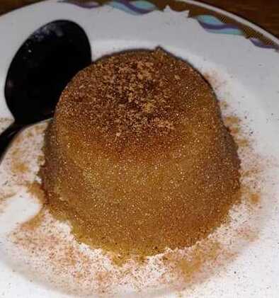Αναποδογυρίζουμε τον χαλβά σε πιατέλα και ρίχνουμε από πάνω κανέλα. Τρώγεται και ζεστός και κρύος.