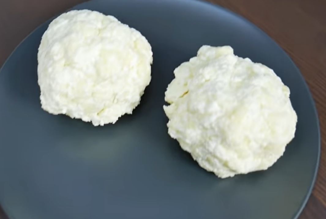 Τα ισομοιράζουμε ζυμώνουμε και κάνουμε 2 μπάλες τυριού αφήνουμε λίγο τυρι στο μπολ για το τέλος.