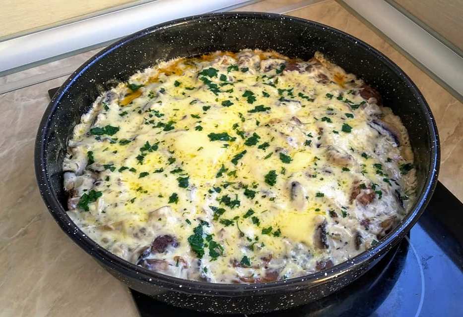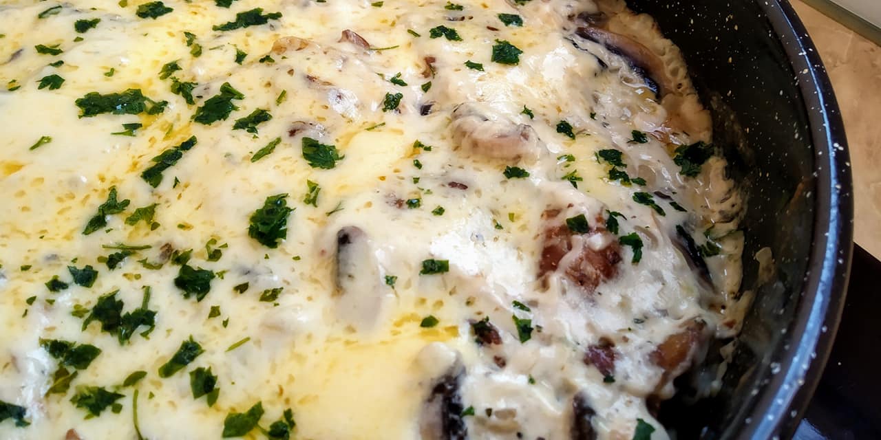 Χοιρινές μπριζόλες λαιμού με σάλτσα μανιταριών και τυρί