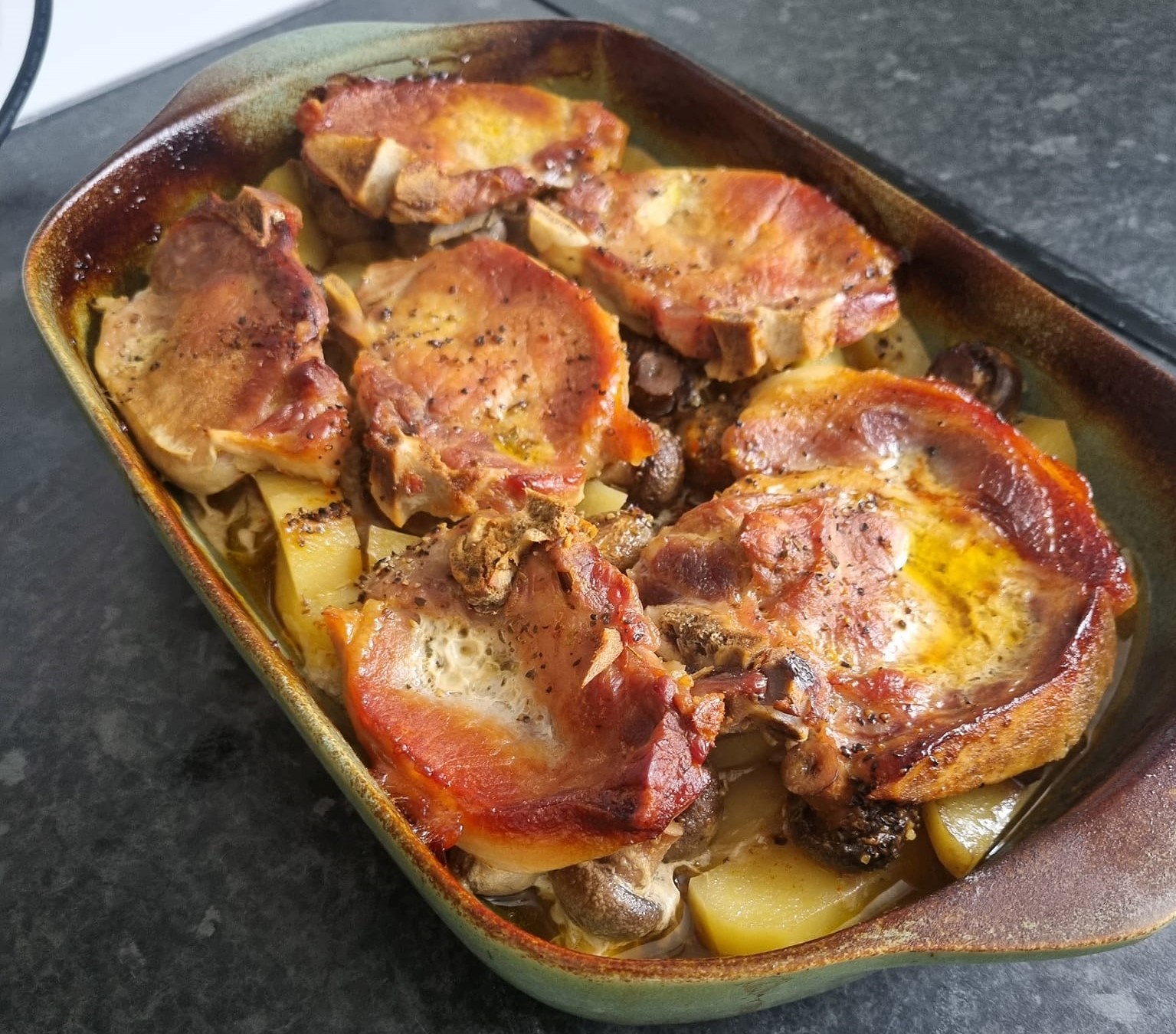 Χοιρινές μπριζόλες με μανιτάρια και πατάτες