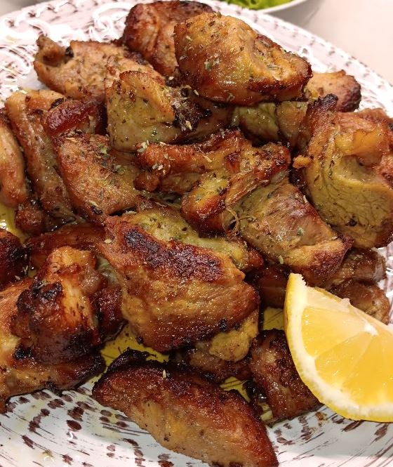 - Κρέας χοιρινό (από μπούτι ή λαιμό), κομμένο σε μικρά κομμάτια (περίπου 600-800 γρ.)