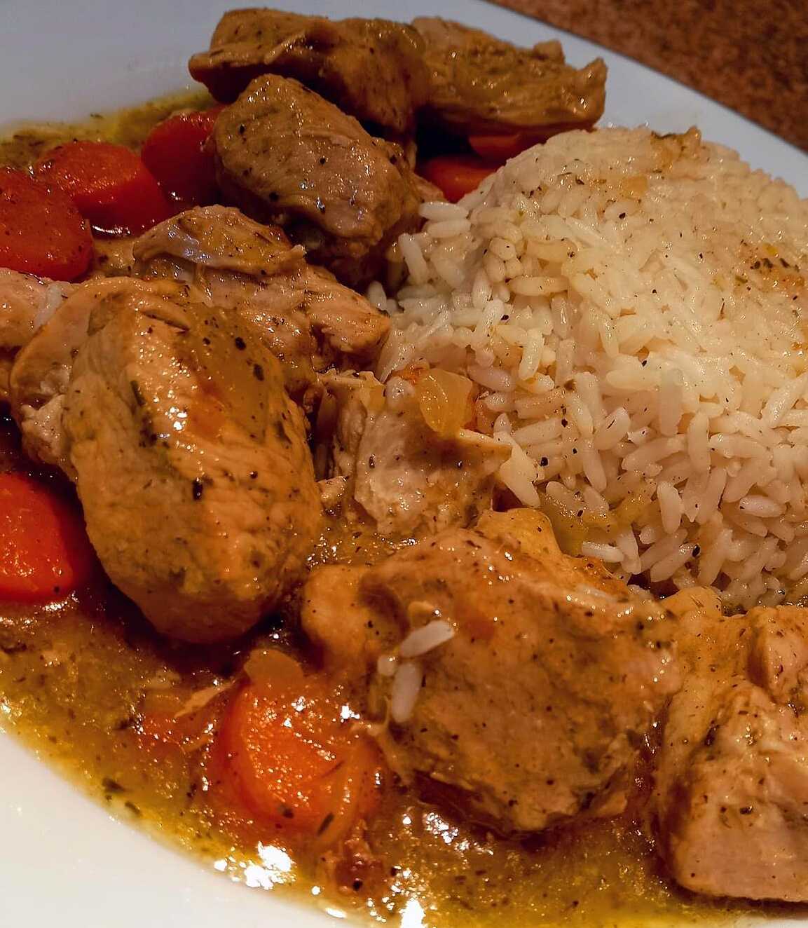 6. Αφησα το φαγητό να πάρει μια τελευταία βράση, ανακατεύοντας συνεχώς, μέχρι να πήξει η σάλτσα και να γίνει βελούδινη. Σέρβιρα το χοιρινό λεμονάτο ζεστό, μαζί με ρύζι.