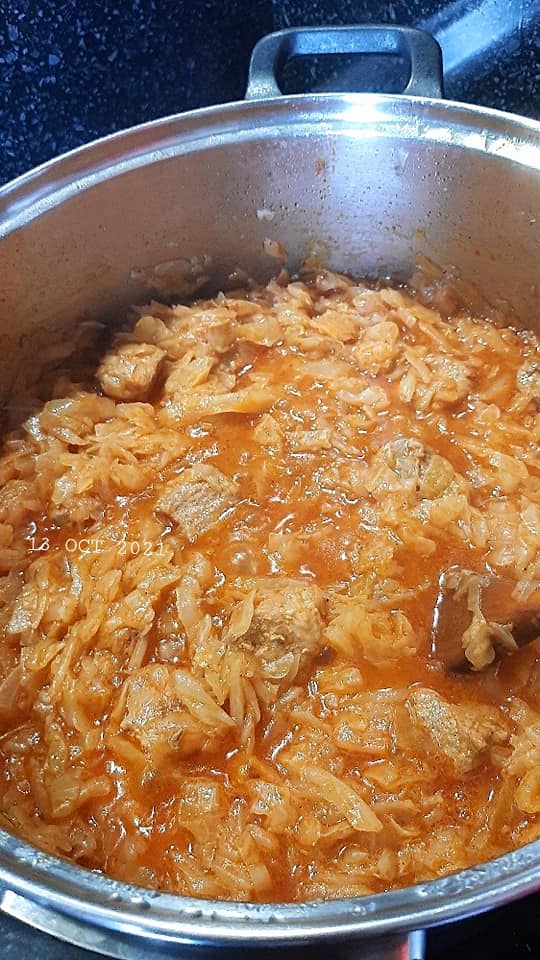 4 Μόλις ετοιμαστεί, ρίχνουμε μέσα στην κατσαρόλα το λάχανο, ξανασκεπάζουμε και μαγειρεύουμε για άλλα 30-35 λεπτά.