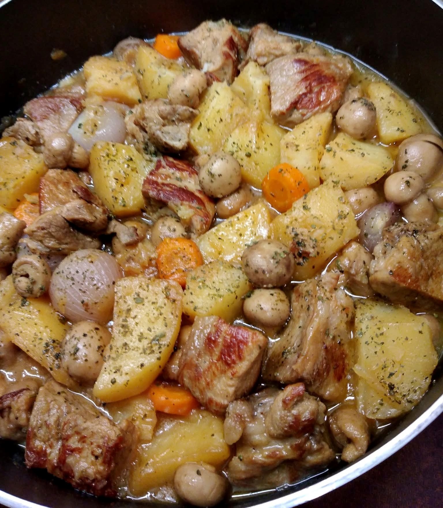 Ετοιμάζω το πιο νόστιμο χοιρινό με πατάτες και μανιτάρια στην κατσαρόλα, ένα πιάτο που φέρνει στο μυαλό μας τα οικογενειακά τραπέζια και τις αγαπημένες, παραδοσιακές γεύσεις! Το κρέας γίνεται απίστευτα μαλακό και ζουμερό, ενώ το κρασί και τα μπαχαρικά του δίνουν ένα βαθύ, πλούσιο άρωμα που θα λατρέψετε. Είναι μία συνταγή που χορταίνει και ζεσταίνει την καρδιά, ιδανική για τις κρύες νύχτες του χειμώνα.