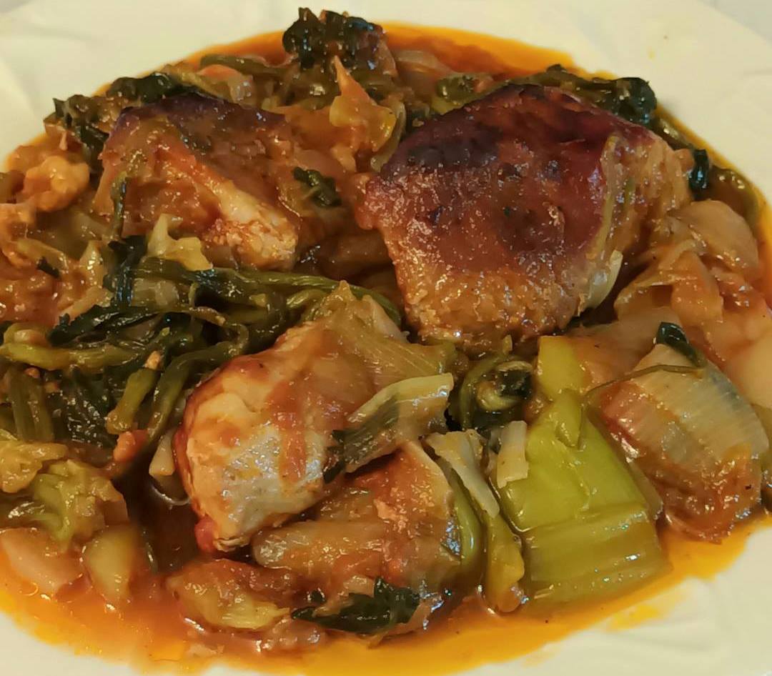 Στο μεταξύ, έχω πλύνει τα πράσα και το σέλινο και τα έχω ρίξει σε αλατισμένο νερό που βράζει, για 5-7λ. Τα στραγγίζω καλά.