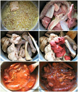 Προσθέστε αλάτι και αρκετό νερό για να καλύψετε το κρέας. Καλύψτε την κατσαρόλα με ένα καπάκι και μαγειρέψτε, σε μια αργή φωτιά,