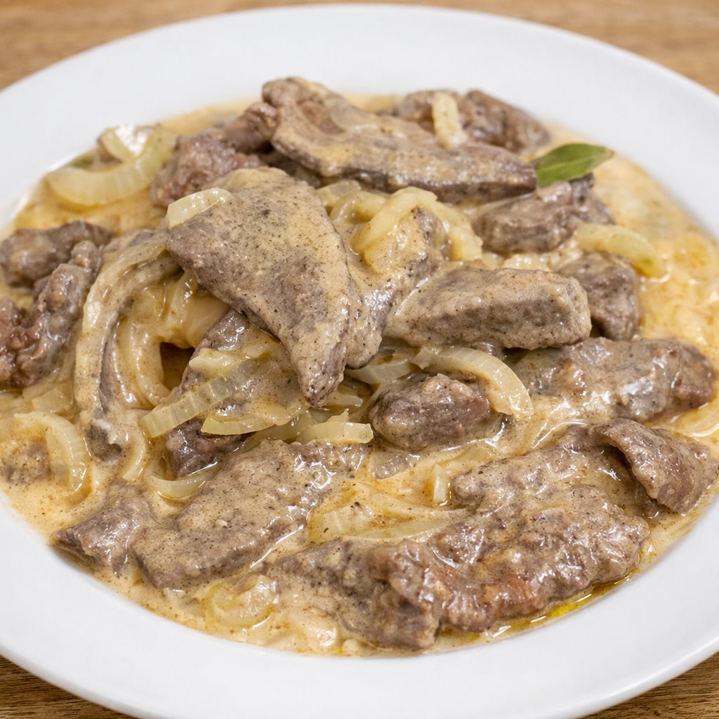 Χοιρινό συκώτι βρασμένο σε γιαούρτι και σάλτσα ντομάτας
