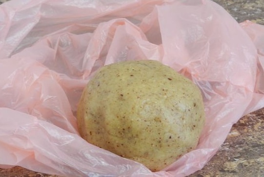 Ψύξη: Πλάθουμε τη ζύμη σε μια μπάλα και τη βάζουμε στο ψυγείο για μία ώρα για να σφίξει.