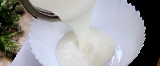 Σε μία κατσαρόλα σε μέτρια φωτιά ρίχνουμε το αλεύρι, το γάλα, και ανακατευουμε μέχρι να πήξει.