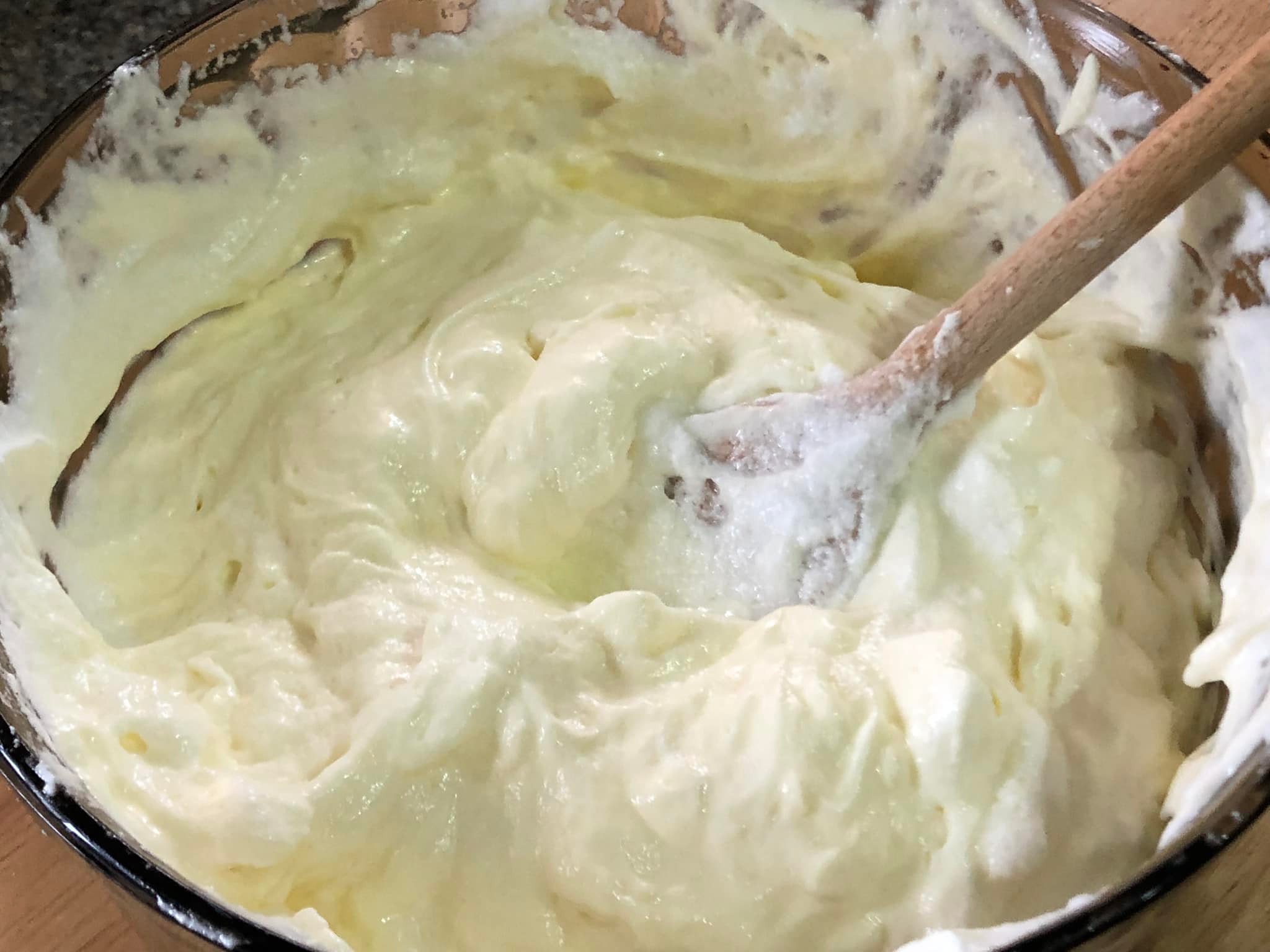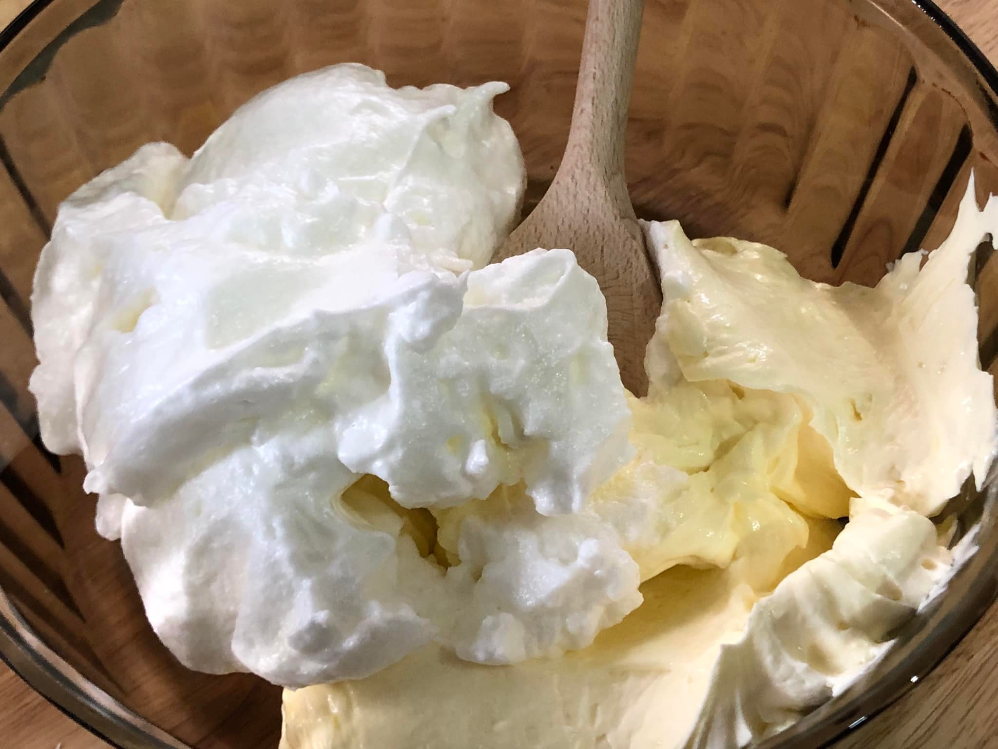 Το διπλώνουμε χρησιμοποιώντας μια μεγάλη ξύλινη κουτάλα καθώς θέλουμε το μείγμα που προκύπτει να είναι ελαφρύ και αέρινο με όγκο…..προσπάθησε λοιπόν να μην καταπονήσεις το μείγμα 👍