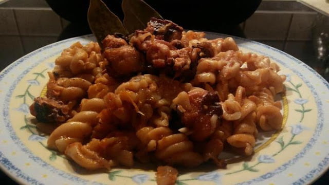 Σε άφθονο αλατισμένο νερό βράζετε τις βίδες al dente. Tις σουρώνετε και τις ρίχνετε στη κατσαρόλα με το χταπόδι. Ανακατεύετε καλά και σερβίρετε.