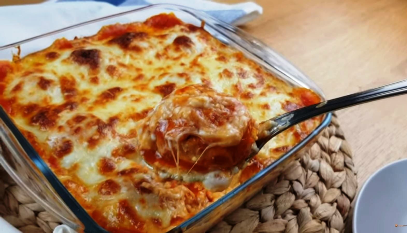 Σε ένα ταψί βάζουμε λίγο σάλτσα ντομάτας στο κάτω μέρος και τοποθετούμε τα γεμιστά αυγά.