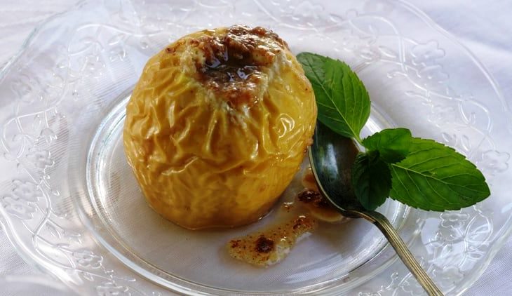 Ψήστε τα μήλα μέχρι να είναι τρυφερά, 45 έως 50 λεπτά. Αφαιρέστε από το φούρνο, αφήστε το να κρυώσει λίγο και σερβίρετε,