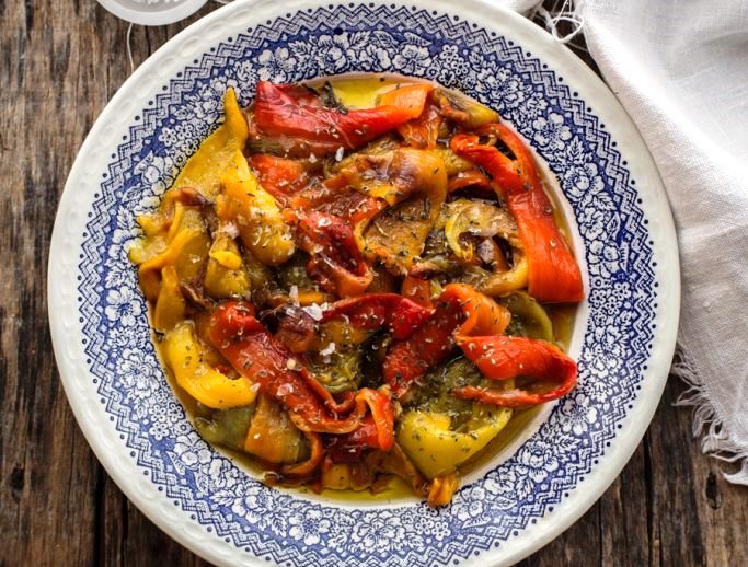 Συγκεντρώστε τις πιπεριές σε ένα μπολ, ραντιστε με έξτρα παρθένο ελαιόλαδο, μία τριμμένη σκελίδα σκόρδο, αλάτι, μαϊντανό πιπέρι και αποξηραμένη ρίγανη για την γεύση.