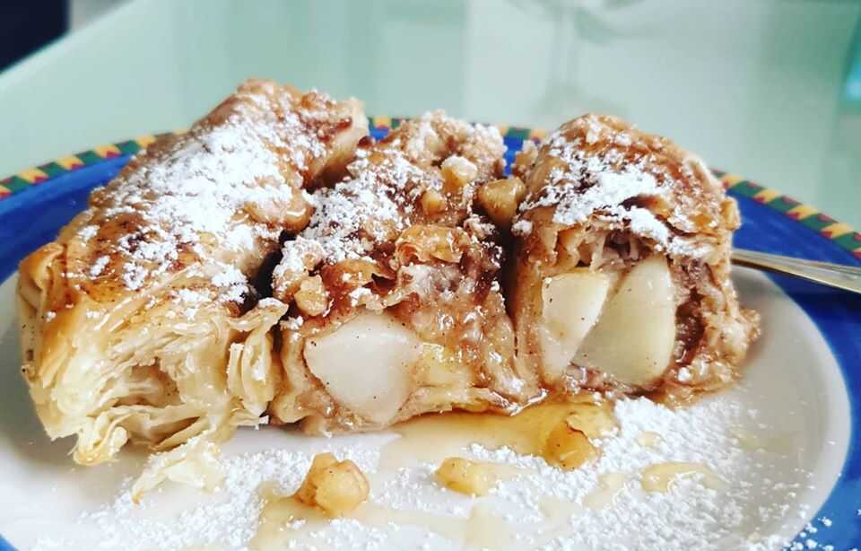 Ψητό αχλάδι με ξηρούς καρπού σε φύλλο