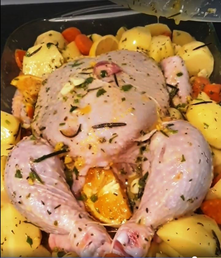 • Ψηστε το κοτόπουλο για 25 λεπτά στους 230 ° C και στη συνέχεια μειώστε τη φωτιά στους 170 ° C για 1 ώρα  και μισή ώρα.