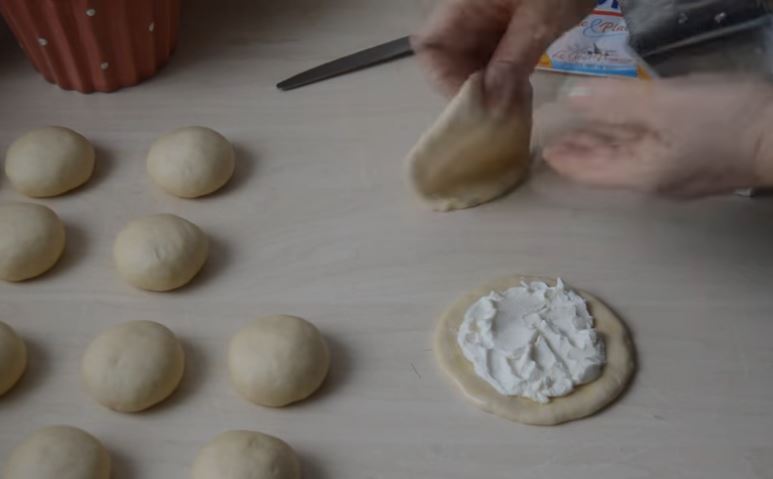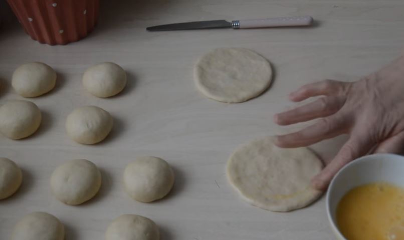 Τα κάνουμε μπαλάκια και με τα δάχτυλα μας πατάμε ένα ένα και το ανοίγουμε σε μικρό φύλλο.