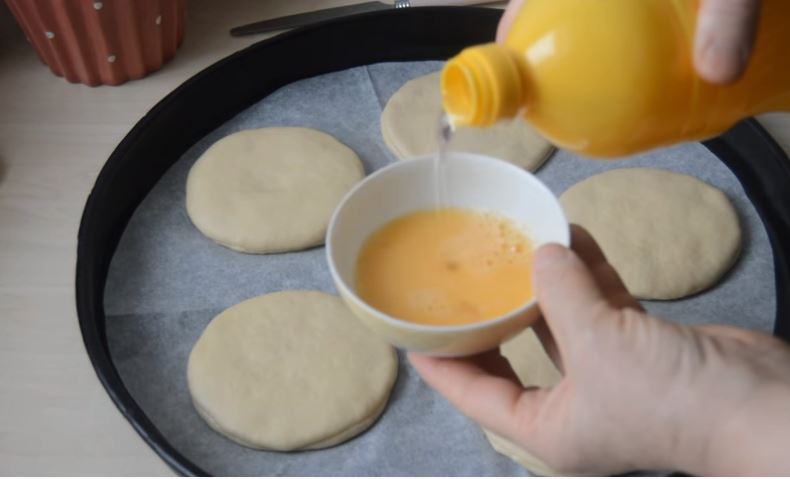 Με το υπόλοιπο αυγό αφού ρίξουμε 2 κουταλιές της σούπας ηλιέλαιο αλείφουμε όλα τα ψωμάκια μας.