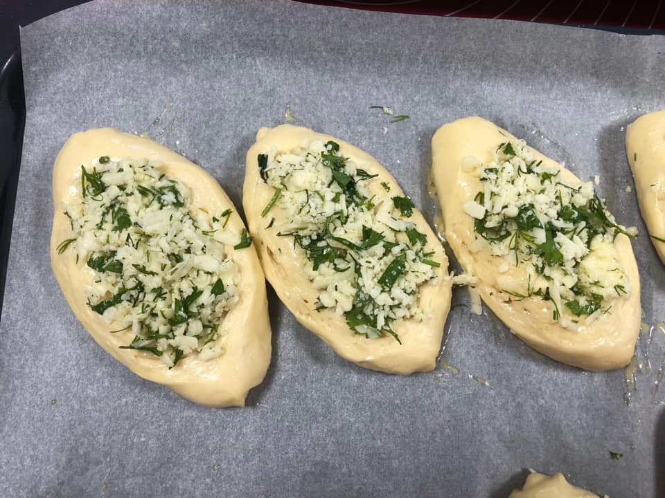 Ψωμάκια καραβάκια με τυρί και μυρωδικά.