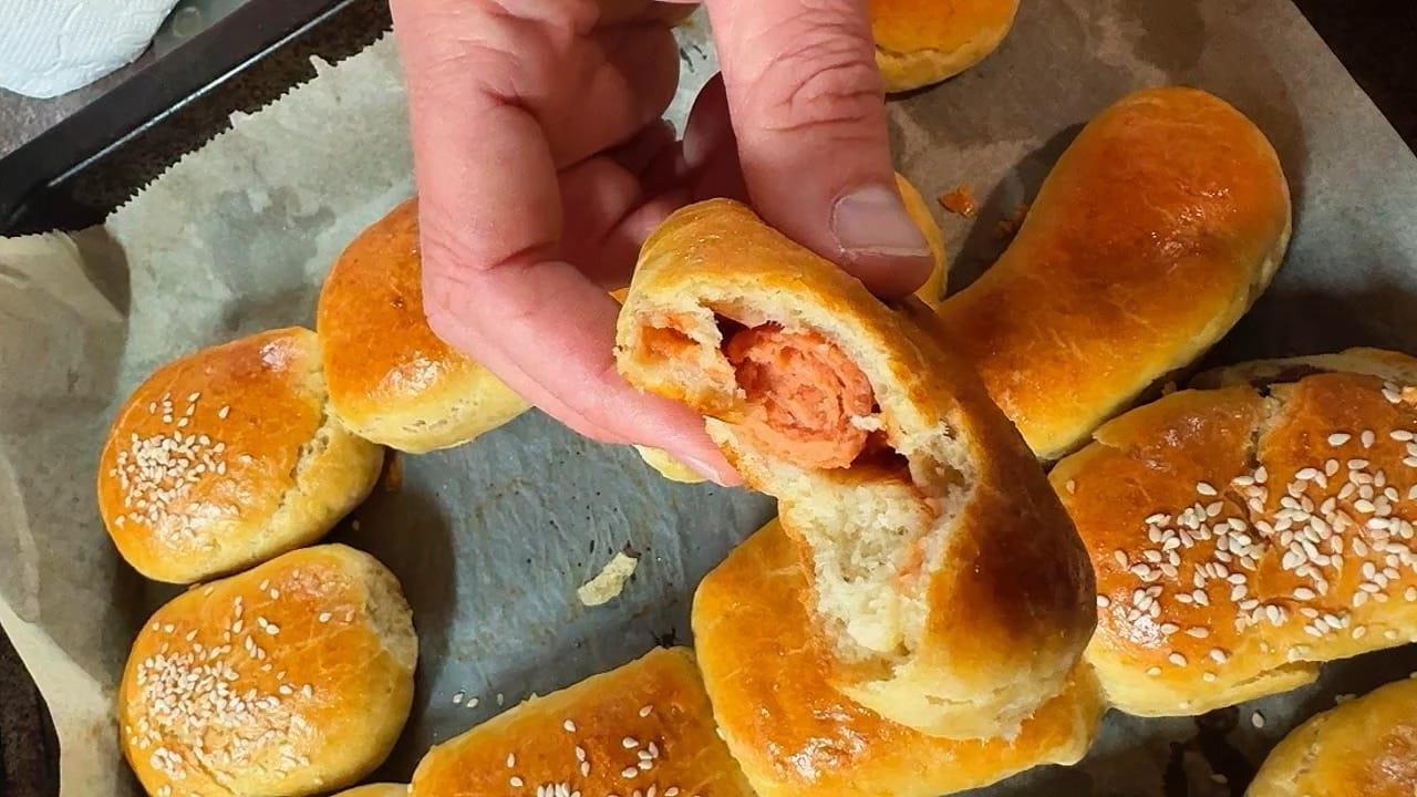 Κάνουμε μπαλίτσες των 60γρ και μετά ανοίγουμε σχεδόν σαν ένα πιατάκι του καφέ. Γεμίζουμε με υλικά αρεσκείας μας. Εγώ στα μισά έβαλα τυρί φέτα, σε κάποια λουκάνικο γκουντα κετσαπ και έκανα και λίγα γλυκά με μερεντα