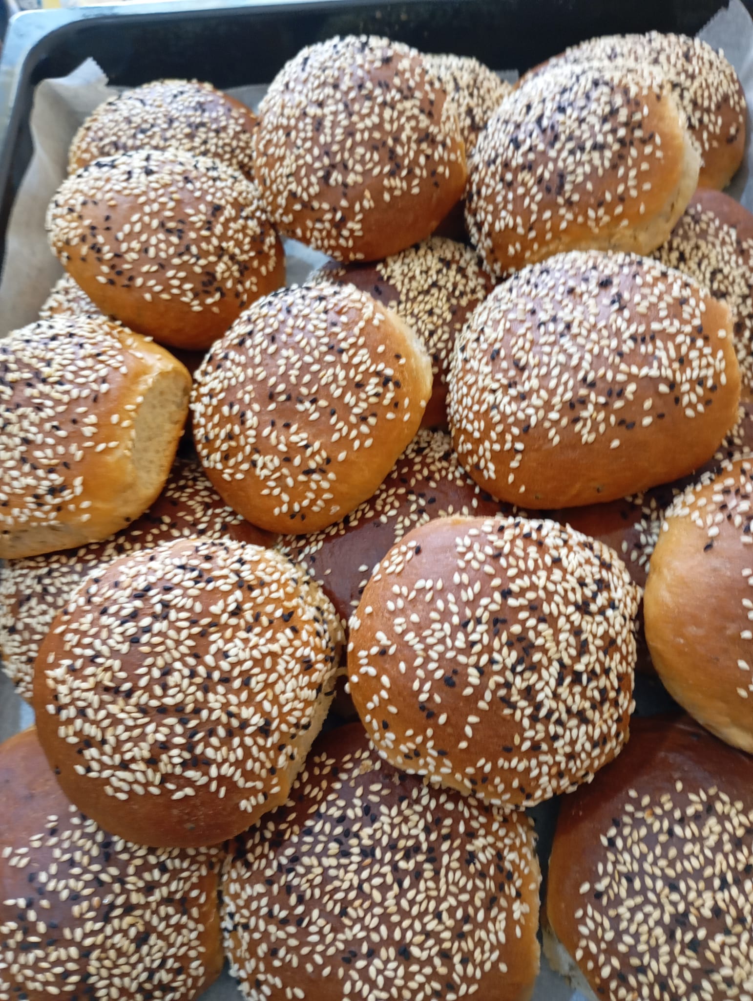 Χωρίστε τη ζύμη σε ίσα μέρη και πλάστε τα σε μικρά ψωμάκια και παλσπαλιστε με σουσάμι και μαυροκούκι.
