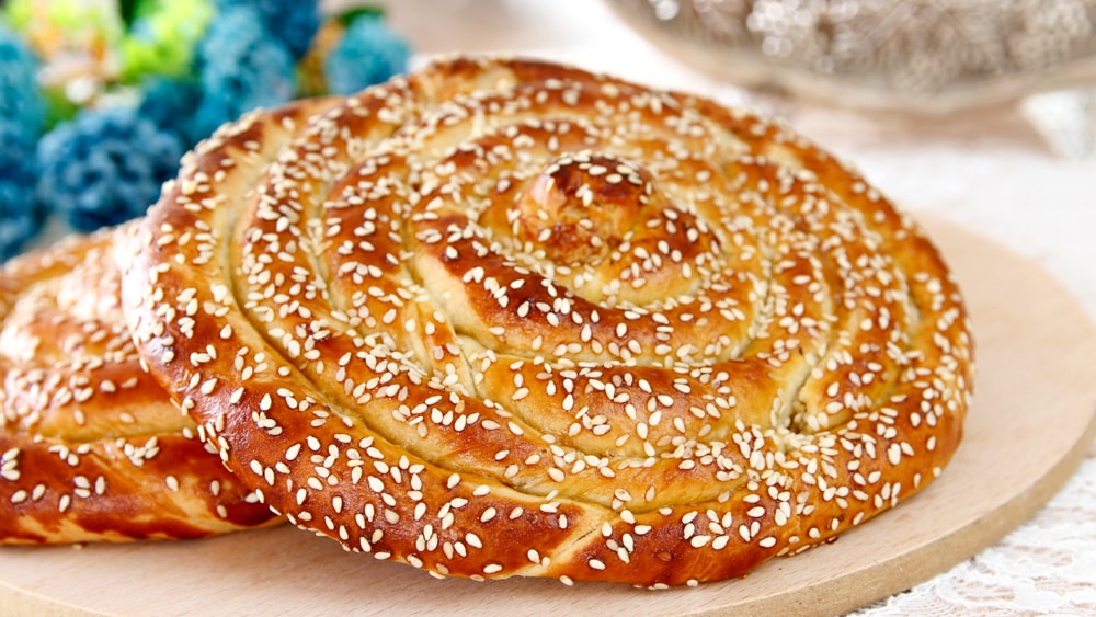 Πασπαλίζουμε το σουσάμι πάνω τους και τα ψήνουμε στον προθερμασμένο φούρνο στους 180 ° C για 20 ή 25 λεπτά μέχρι να ροδίσουν.