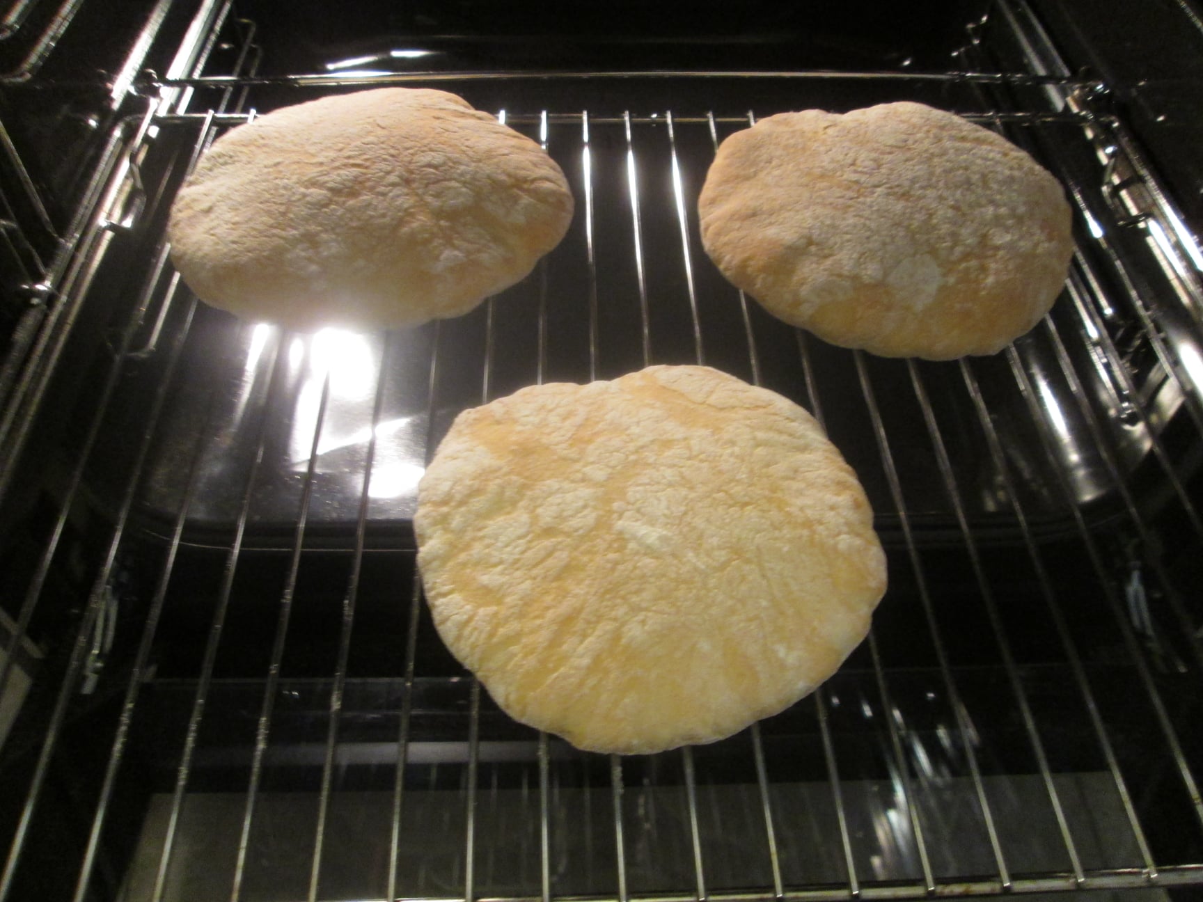 4. Όταν ζεσταθεί ο φούρνος , τακτοποιήστε τα ψωμάκια στη σχάρα και επιστρέψτε τα στο φούρνο για ψήσιμο. Μόλις τα ψωμάκια «πρηστούν» και γίνουν ελαφρώς καφέ, βγάλτε τα έξω από το φούρνο, ψήνονται (μου πήρε 9 λεπτά στη ψωτιά με στον αέρα).