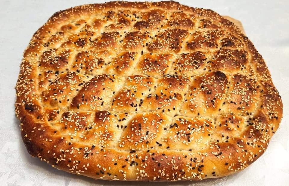πασπαλίζουμε με σουσάμι και αφήνουμε να φουσκώσει στο ταψί για άλλα 30 λεπτά