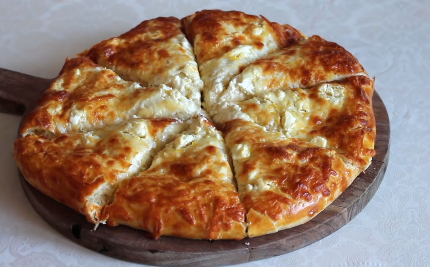 Την πατάμε με τα δάχτυλα μας και την ανοίγουμε περίπου 30 εκατοστά.Βάζουμε στο κέντρο την μπάλα του τυριού και κλείνουμε τις άκρες σαν πουγκί.