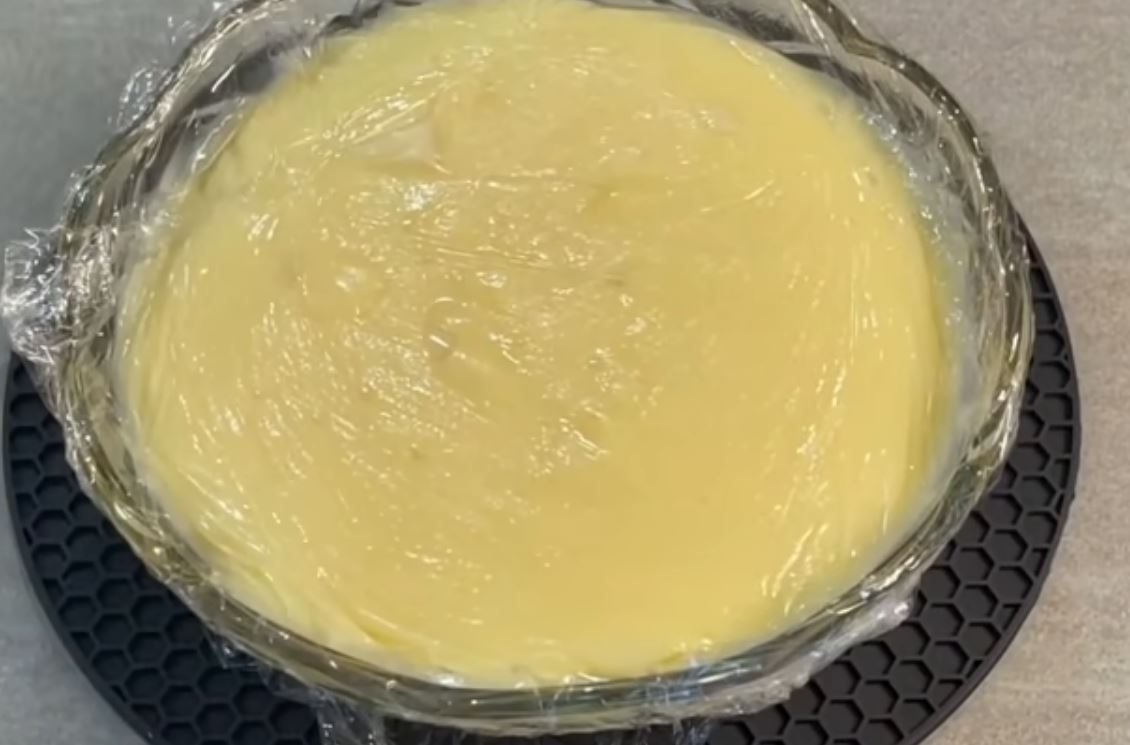 το βούτυρο και ανακατεύουμε μέχρι να ενσωματωθεί με την κρέμα στη συνέχεια αδειάζουμε την κρέμα μέσα σε ένα γυάλινο μπολ τη σκεπάζουμε με μία μεμβράνη η οποία εφάπτεται πάνω στην κρέμα και την βάζουμε στο ψυγείο.
