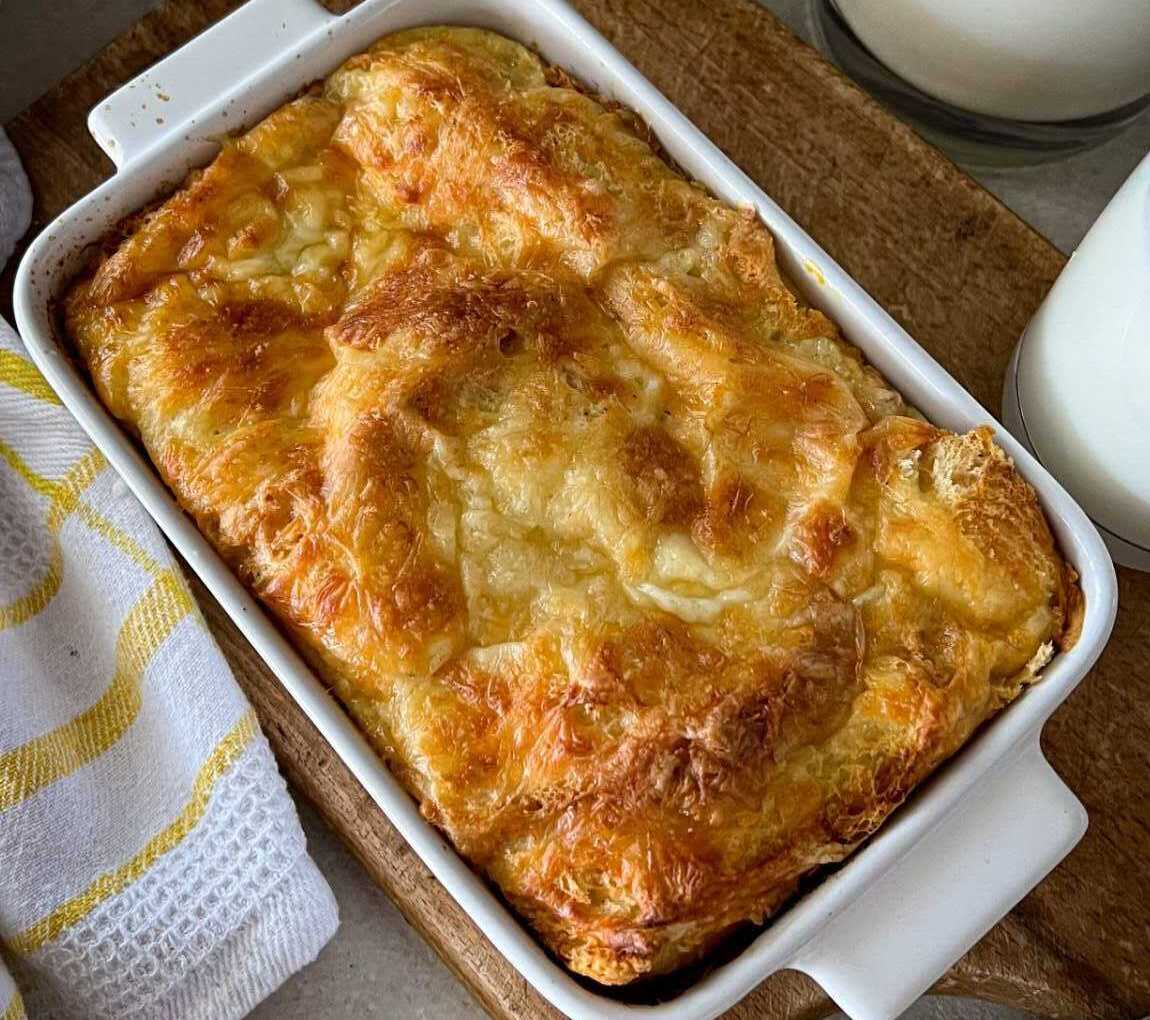 Αυτό το Σουφλέ με ψωμί, αυγά και τυρί είναι μια πολύ ενδιαφέρουσα και πρακτική συνταγή που ανυπομονούσα να φτιάξω. Αυτό που μου άρεσε περισσότερο είναι ότι μπορεί να ετοιμαστεί από το βράδυ, να μπει στο ψυγείο και να ψηθεί το πρωί, κάτι που με βολεύει πολύ γιατί δεν έχω πολύ χρόνο. Με αυτόν τον τρόπο, το ψωμί απορροφά όλα τα υγρά σαν σφουγγάρι, και όταν ψηθεί, σχηματίζεται μια νόστιμη κρούστα αυγού στην κορυφή, ενώ η μέση παραμένει μαλακή.