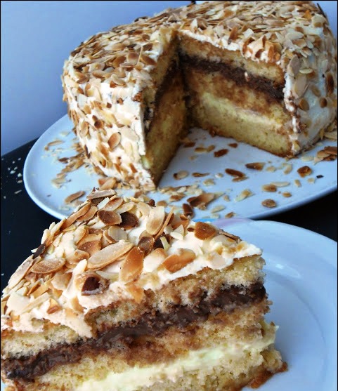 Απλά αλείφω όλο το γλυκό με την βουτυρόκρεμα και στολίζω με ψημένο φιλέ αμυγδάλου.