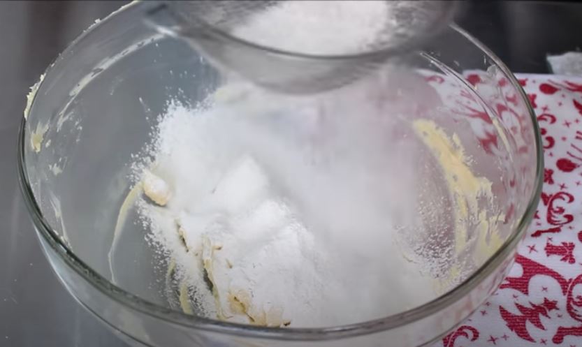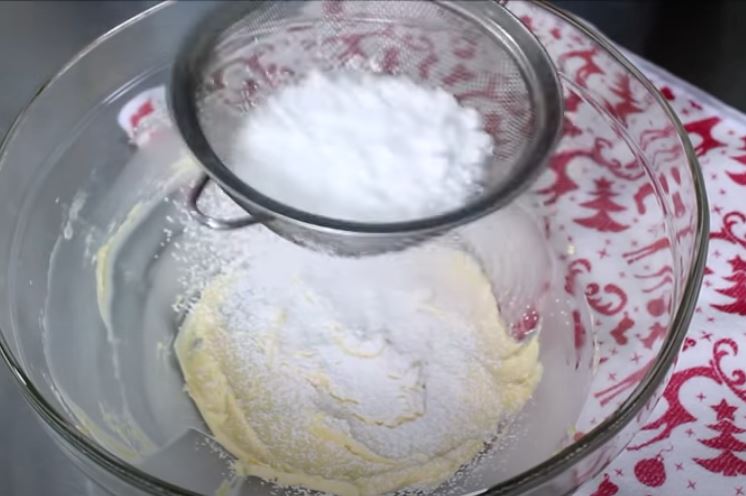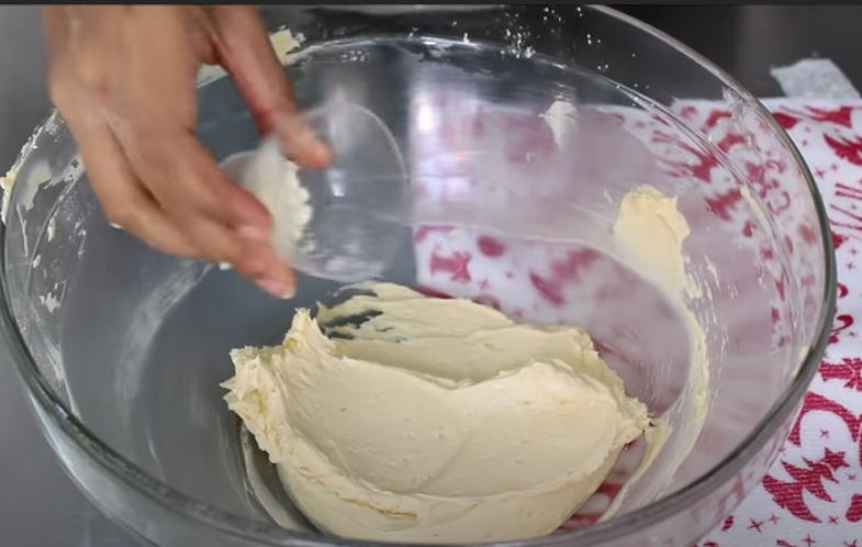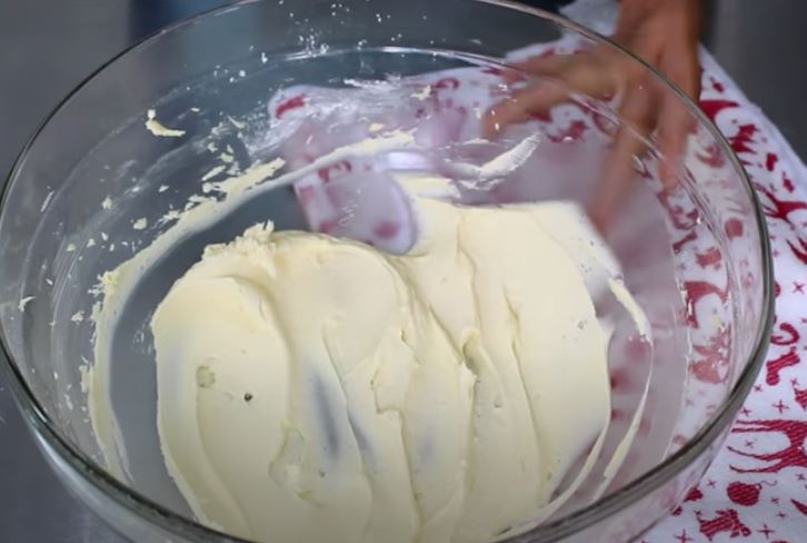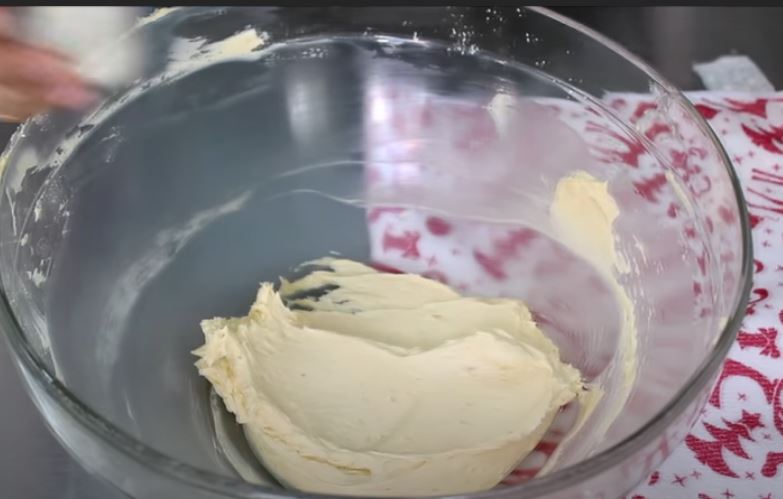 Σε ένα μπολ βάζουμε το βούτυρο και το χτυπάμε με μιξερ χειρός και το ανακατεύουμε στο τέλος και μία μαριζ. Κοσκινίζουμε μέσα στο μπολ με το βούτυρο την άχνη ζάχαρης και ανακατεύουμε με την μαριζ και ξαναχτυπάμε με το μίξερ μέχρι να κρεμώσει.