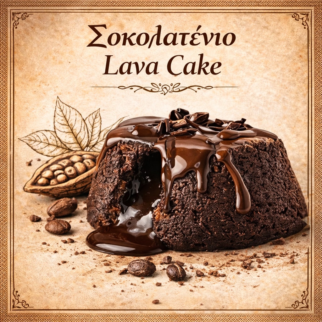 Λάδωσε καλά μικρά ατομικά φορμάκια και πασπάλισε με κακάο — όχι αλεύρι, γιατί το αλεύρι κάνει λευκή κρούστα που φαίνεται. Γέμισε τα φορμάκια μέχρι τα ¾. Ψήσε στους 200°C για 10–12 λεπτά ακριβώς — αυτός ο χρόνος είναι κρίσιμος. Λιγότερο: δεν έχει σχηματιστεί το εξωτερικό. Περισσότερο: ψήνεται και το εσωτερικό και χάνεις τη ρευστή καρδιά. Ανάποδιάστε αμέσως στο πιάτο και σερβίρε επί τόπου.
