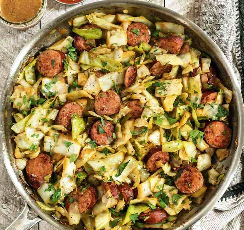 Μόλις είναι μαλακά, ραντίστε με την σάλτσα μουστάρδας πάνω από το τηγάνι, ξεκινώντας με μόλις με την μισή ποσότητας. Ανακατέψτε για να ανακατευτεί όλο το λουκάνικο και το λάχανο με την σάλτσα, και προσθέσετε περισσότερο αν χρειαστεί.
