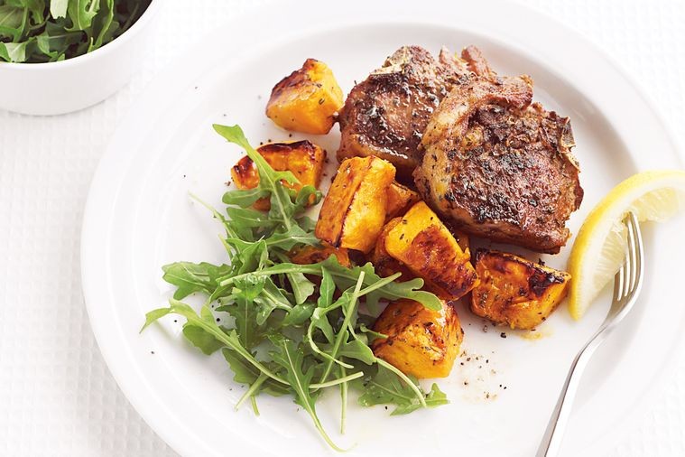 Αδειάζουμε τις πατάτες σε βαθύ ταψί. Από πάνω τοποθετούμε το κατσικάκι. Αλατοπιπερώνουµε και περιχύνουμε µε το μείγμα που αλείψαμε τις πατάτες. Τέλος, ρίχνουμε στο ταψί το νερό.
